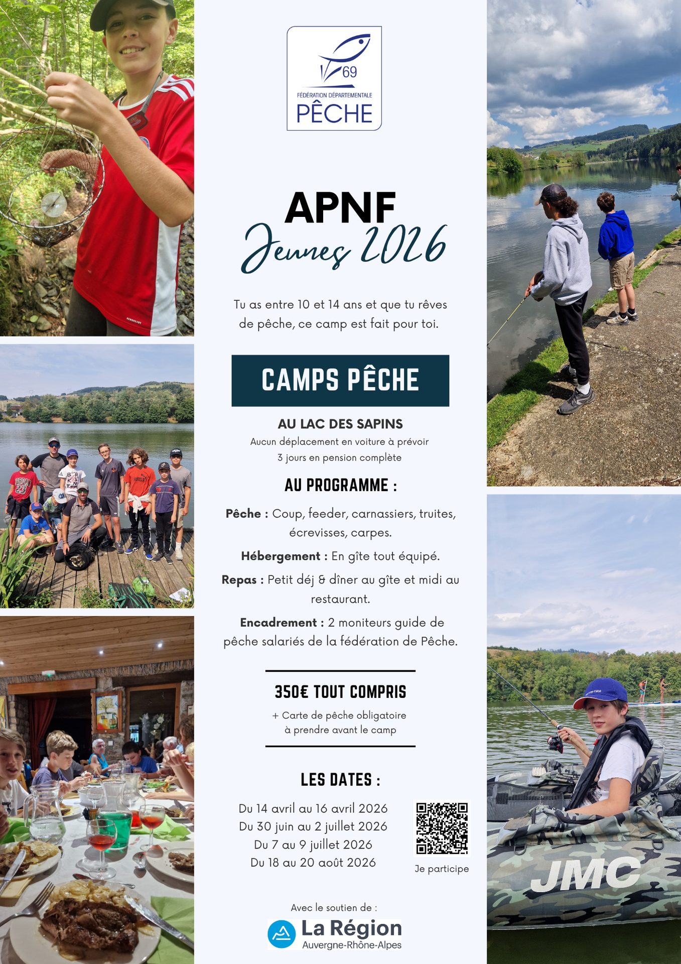 Attention ! le camp d'août est en attente de confirmation, l'ouverture des inscriptions se fera plus tard, si ce camp vous intéresse vous pouvez envoyer un mail (pierrealex.avallet@peche69.fr) pour être en liste d'attente