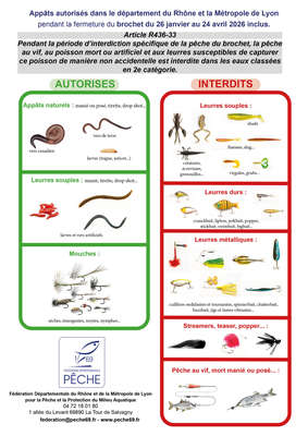 Pendant cet intervalle, la pêche aux leurres et aux vifs est interdite dans toutes les eaux de 2ème catégorie.