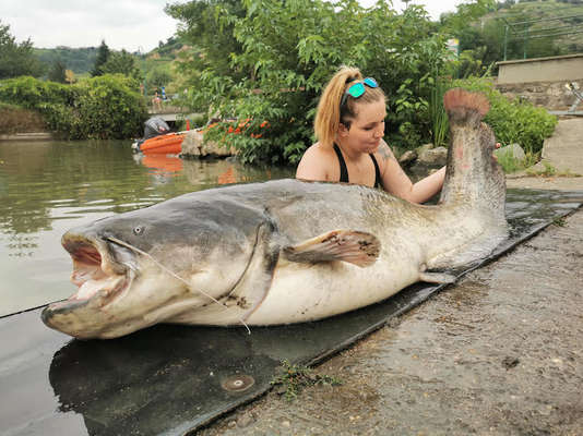 catégorie femme : Pauline CONCINA avec un silure de 2.08 m pris dans le Rhône à Condrieu