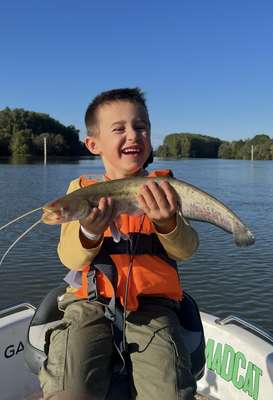 catégorie enfant : Nolan LEROY avec un petit silure de 50 cm pris dans la Saône au niveau de Belleville en Beaujolais