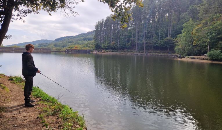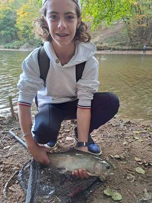 Après cette prise record, la pêche s'est corsée pour l'ensemble des participants. Mais la persévérance a payé. C'est ensuite Victor, dans la catégorie Juniors, qui a tiré son épingle du jeu en capturant une grosse truite arc-en-ciel de 47 cm. Ce beau spécimen est un vestige des alevinages de printemps sur le barrage, et sa capture a prouvé la technique de notre jeune champion.