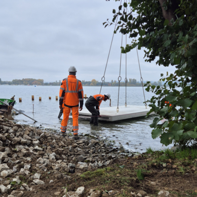 Les espaces verts et les berges ne sont pas encore stabilisés ni végétalisés. Merci de les éviter afin de préserver leur qualité future.