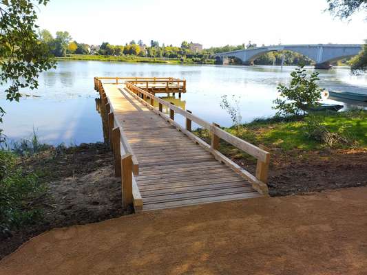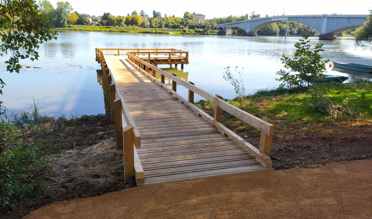 Compte tenu des difficultés d’accès à la rive gauche, cette opération a été l’occasion d’aménager un ponton de pêche accessibles aux personnes à mobilité réduite.